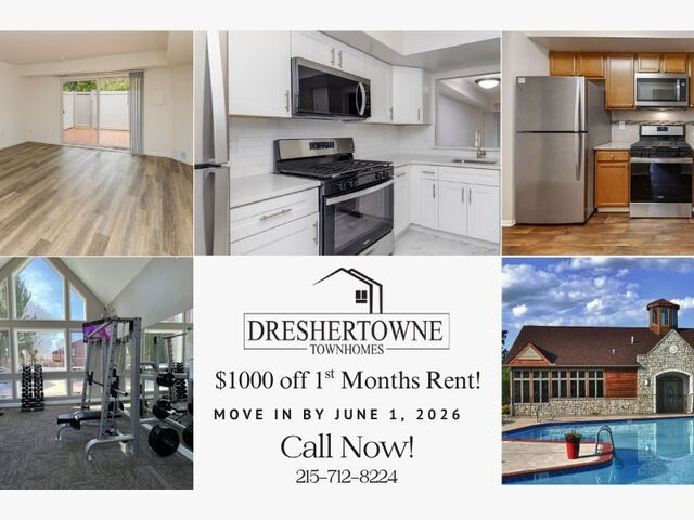 Discover Dreshertowne, a community of two- and three-bedroom townhomes in Horsham, PA! Located in Montgomery County, Horsham is a charming suburb of Philadelphia. Our Dreshertowne community is perfectly positioned near all of Horsham’s hot spots, with an array of coffee shops, restaurants, and bars all within a five-minute drive. Horsham offers year-round entertainment, whether it be pickleball tournaments at the Municipal Complex, youth fishing contests at Kohler Park, or farmers markets at Deep Meadow Park. Our apartments are also located in the highly rated Hatboro-Horsham School District, perfect for all ages.